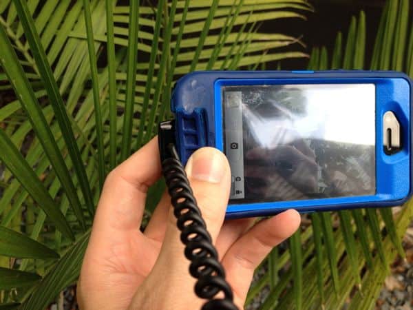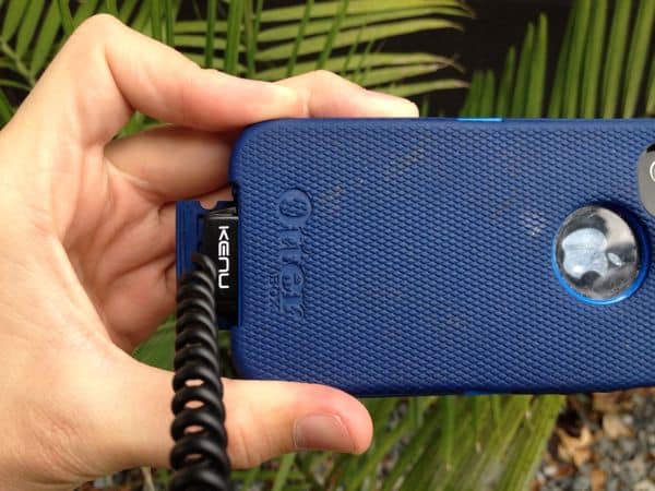 If you want to turn your phone around to use the better camera, you’ll notice the extra stress on your phone as the spiraled design of the cord must wrap back around the connector (photo below): a minor inconvenience.